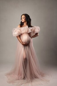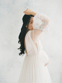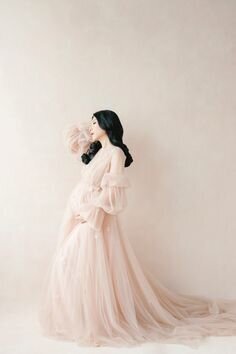 A romantic gown with delicate volume and flowing fabric, offering softness and ease. Its graceful movement creates a tender, ethereal feel in portraits.