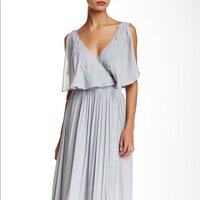An airy gown with feminine details and flowing lines that feel both delicate and elevated. Its design brings a sense of lightness and romance to every frame.