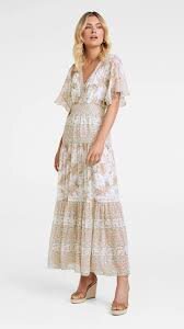 Light tiered maxi with soft ruffle edges; volume is vertical rather than wide, keeping the silhouette lengthened. Movement reads poetic in breeze or a gentle walk.