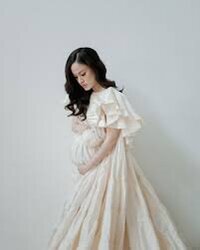 A romantic gown with soft sleeves and gentle gathers at the waist, creating a feminine and graceful silhouette. Its flowing skirt brings ease and softness to portraits, especially in movement.