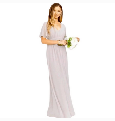 A romantic gown with graceful lines and a flattering silhouette that feels both timeless and easy to wear. Its flowing fabric photographs with a luminous, painterly quality.