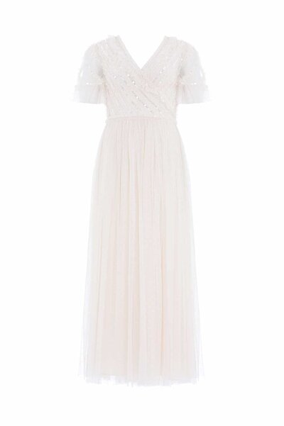 A light, ethereal gown with soft movement and feminine details. Its flowing lines create a dreamy quality that feels both delicate and effortless.