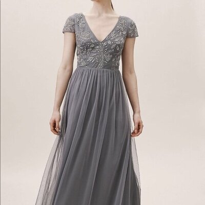 An elegant gown with classic lines and gentle flow, designed to feel refined yet approachable. Its silhouette flatters beautifully while offering ease of movement.